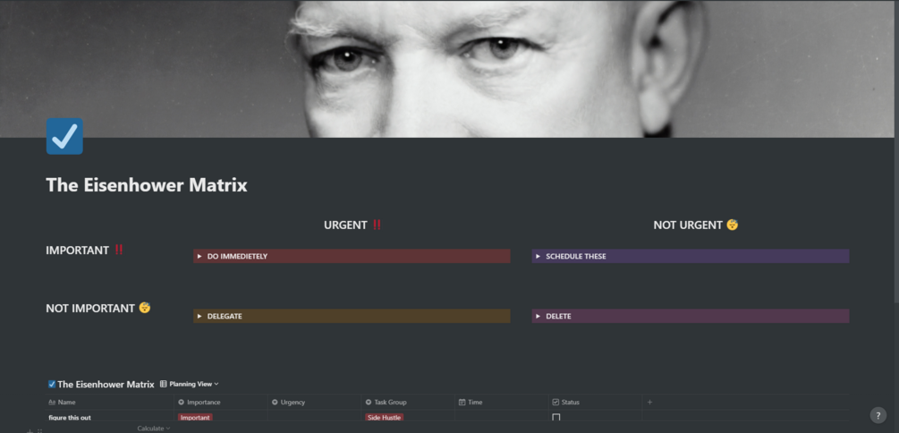 This template is based on the productivity system of former U.S President / General Dwight D. Eisenhower! It breaks tasks down into 4 simple categories and can help you prioritize tasks better!