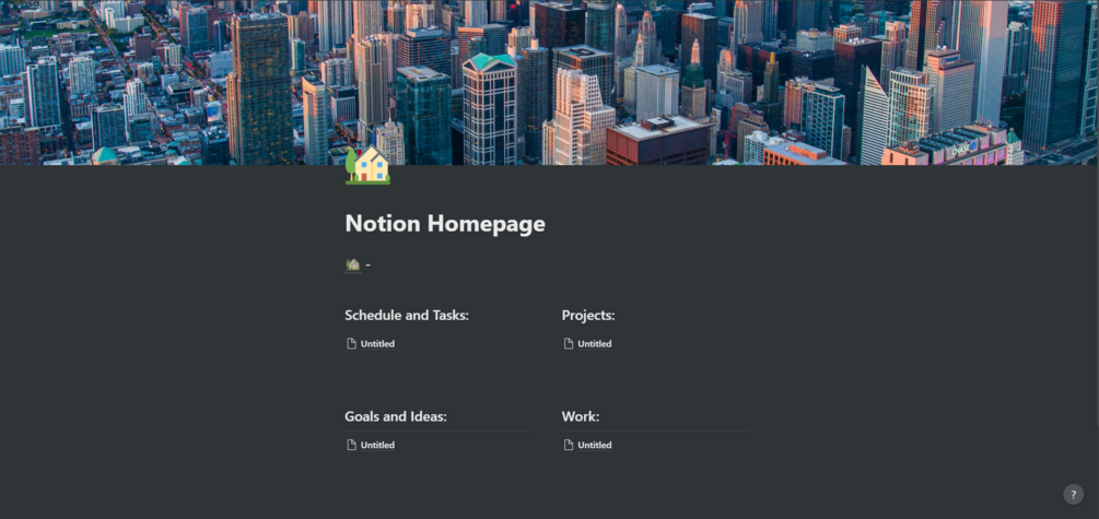 This is a basic homepage in Notion to get you started! It's the most simple layout to get started with before created pages in their proper sections.