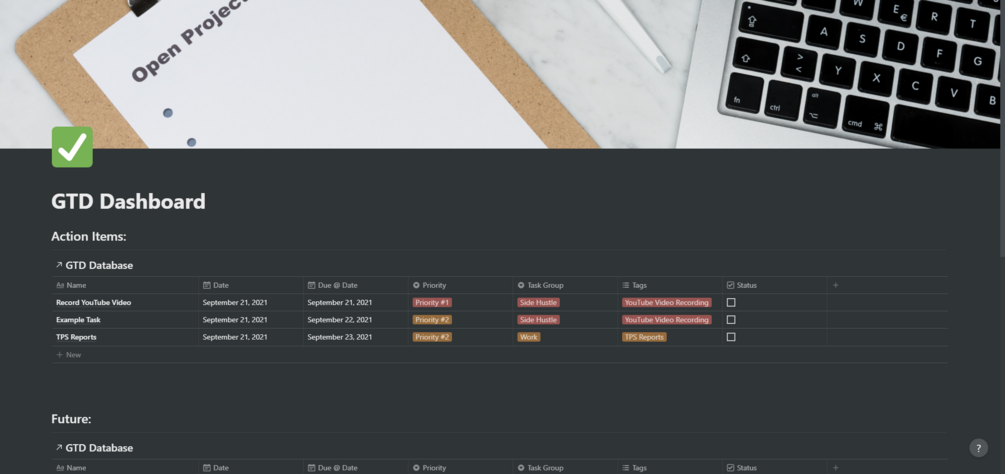 Getting things done is a great system and in this Notion template, it's utilized to its full effect! Enhance your workspace with a complete GTD Dashboard!