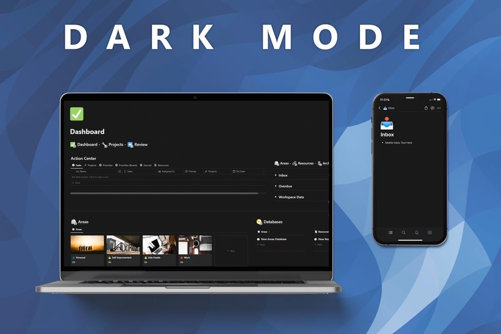 Welcome to the "Getting Things Done Notion Dashboard" - the ultimate productivity tool based on the revolutionary GTD method by David Allen. Say goodbye to the chaos of scattered notes, missed deadlines, and forgotten tasks, and say hello to a more organized and productive you. At Rise Productive, our mission is to provide the most valuable products to our community as possible. Instead of receiving one template, you will receive lifetime access to every individual Notion template and course we will ever make. The Getting Things Done Workspace is truly your Notion system for life!