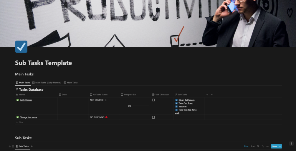 Do you wish Notion had a sub-tasks feature? So do I! That's why I created the Notion Projects + Sub Tasks template! This template will give you access to a simple and easy-to-use Notion system that allows you to quickly and easily create main and sub-tasks in Notion.