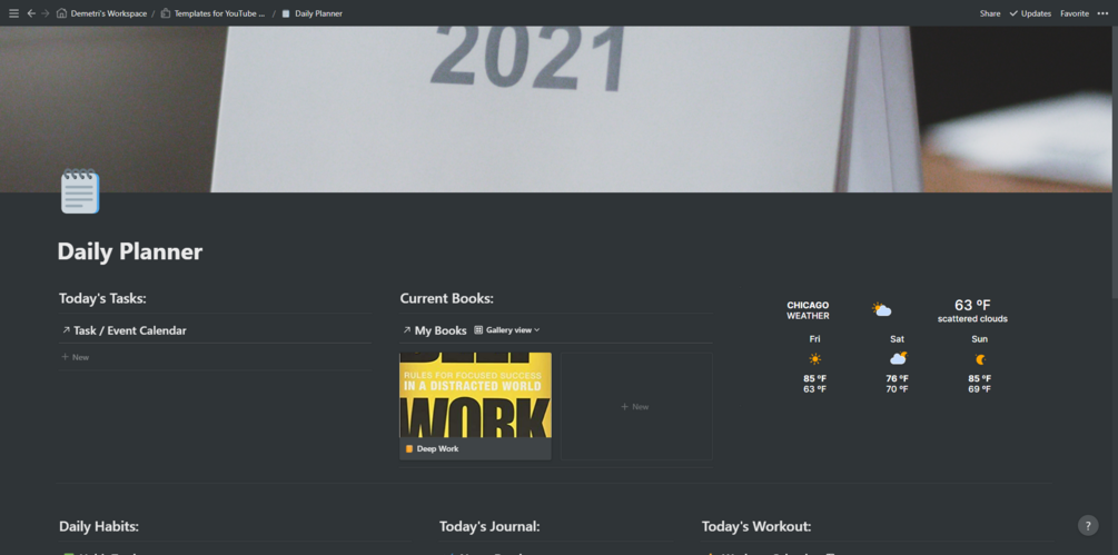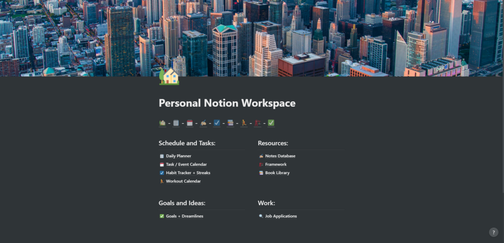 This is an all-in-one workspace for personal use. It comes complete with task/calendar management, habit tracking, a notes database, and much more. If you're looking for a template to have a complete workspace right away then this is for you.